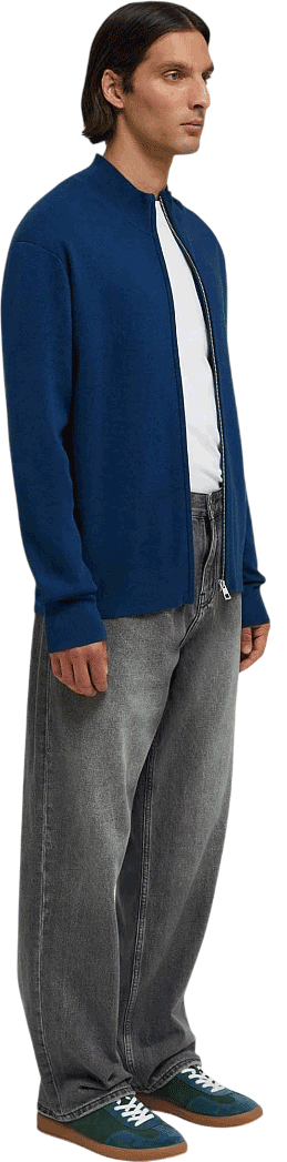 Кардиган на молнии, а не пуговицах, как мы привыкли, — вариант со спортивным настроением. Такие хорошо сочетаются с джинсами и совсем хорошо с вязаными джоггерами.