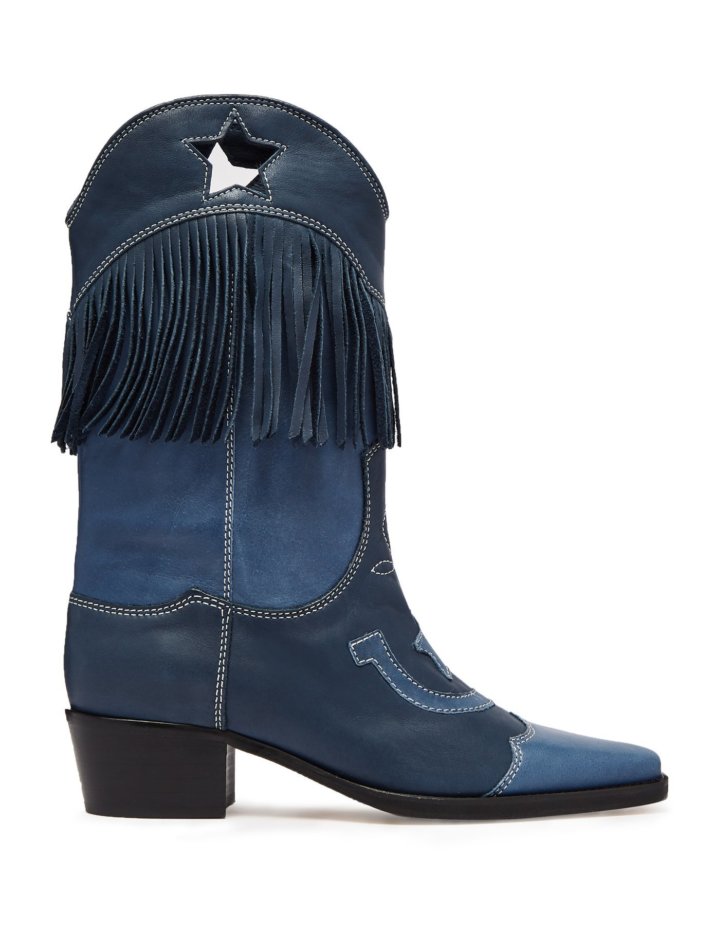 Ковбойские сапоги не уходят с подиумов уже несколько сезонов подряд. Даже то, что «американа» Рафа Симонса для Calvin Klein немного поднадоела — не повод расставаться с этой отличной обувью. Выбирайте любые: низкие, как у Prada, или повыше, как у Isabel Marant, лаконичные или украшенные затейливыми аппликациями (такие можно найти у Massimo Dutti). Есть и модели с бахромой — посмотрите на версию Ganni, и даже с меховыми вставками (зима как-никак!). Их ищите у McQ Alexander McQueen.