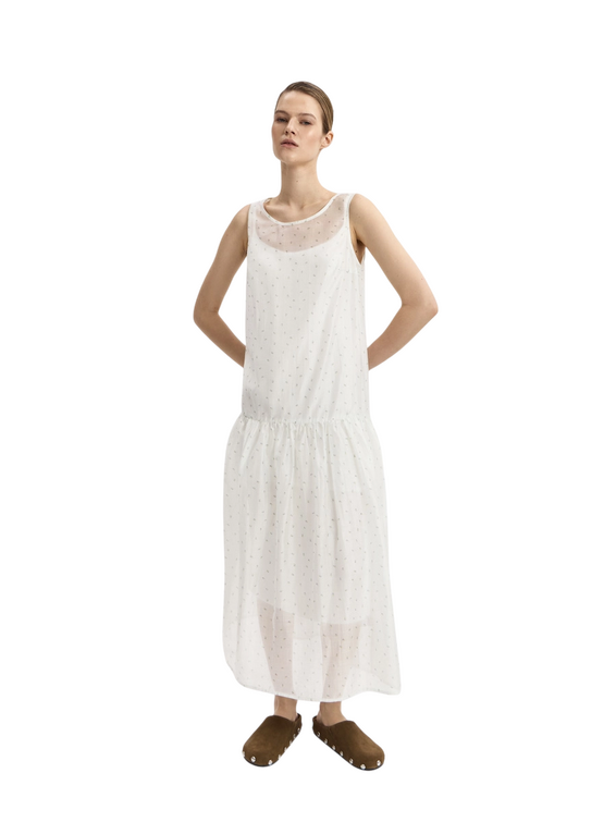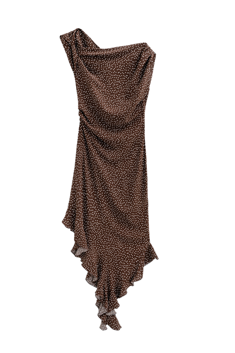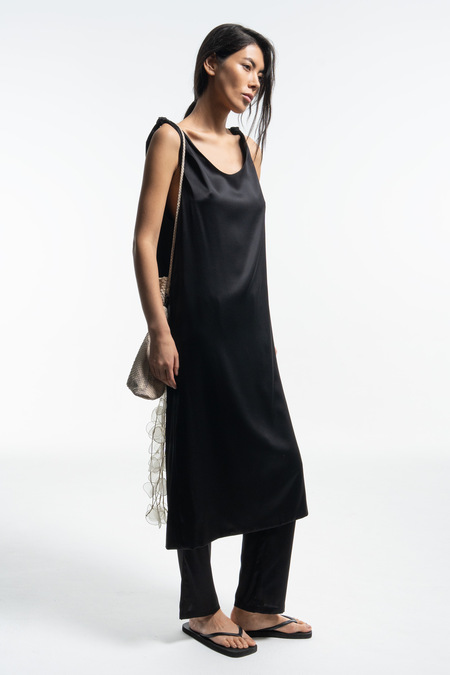 Платья спокойных оттенков, которые мы традиционно называем базовыми, в этом сезоне меняют статус на «трендовые». По данным платформы Tagwalk, в подиумных коллекциях весна-лето 2026 вещей в минималистичном стиле оказалось на 122% больше, чем годом ранее. Самые образцовые представители — платья-футболки Khaite и сарафаны на тонких бретелях Calvin Klein, из-под которых виднелись бюстгальтеры. Свою лепту, разумеется, внес сериал «Американская история любви», прославивший в том числе сочетание черного платья-комбинации с лоферами. Впрочем, тем, кто устал от подражателей Кэролин, можно выбрать кроссовки (Jacquemus снова сделал это сочетание актуальным) или последовать совету сестер Рубан и носить подобную комбинацию поверх брюк с вьетнамками.