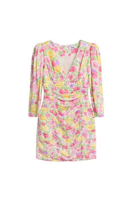 Тем, у кого от цветов в духе СССР в груди не щемит, есть яркая версия принта Чемены Камали в Chloé: крупные бутоны ярких оттенков оранжевого, розового и голубого, напоминающие, скорее, о броских 1980-е. Платья именно с такими цветами выпустили, например, российские бренды 2mood и Love Republic.
