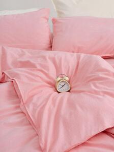 Постельное белье цвета земляничного молока — нежное, как воспоминания о каникулах на даче.