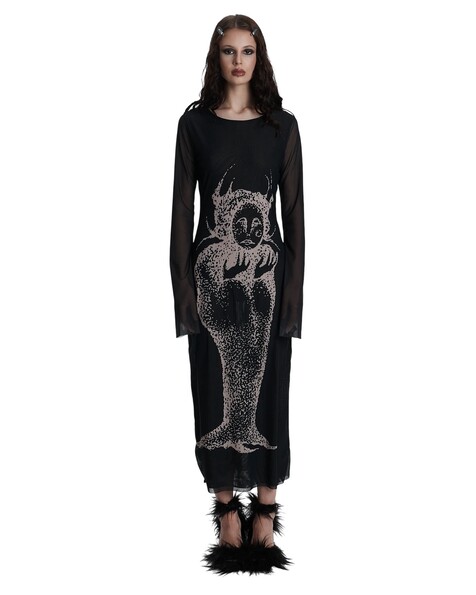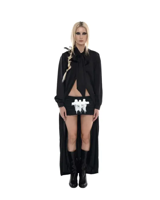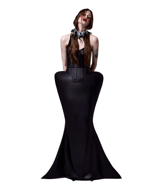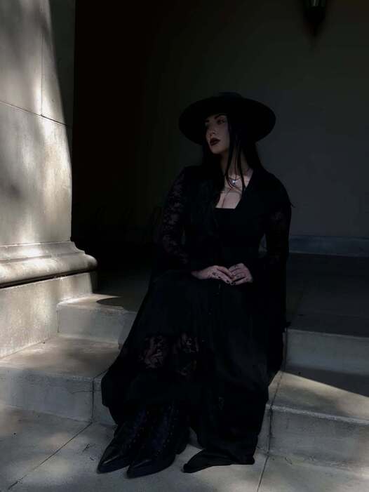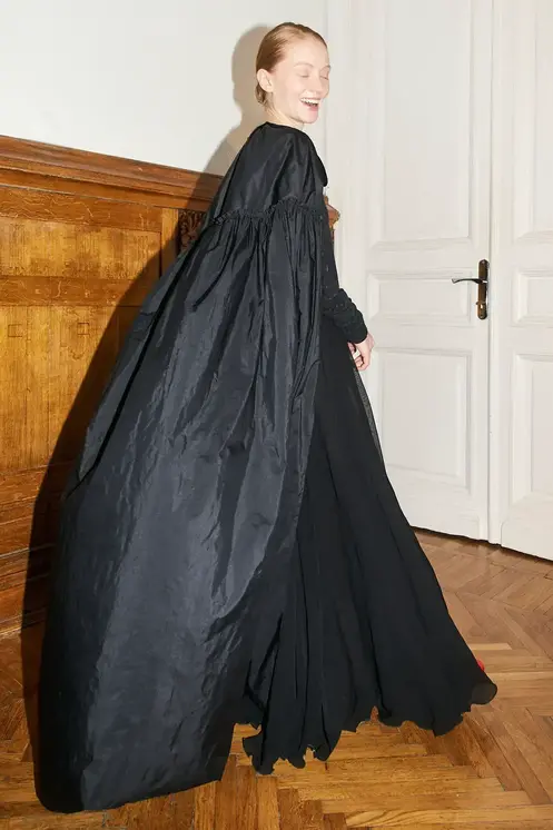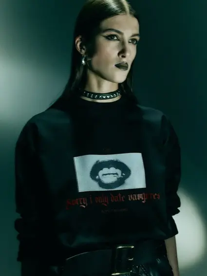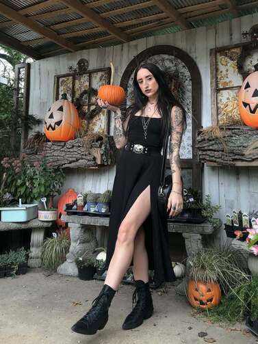 Классический путь — одеться с головы до ног в черное, подражая готам, графу Дракуле или притворяясь ведьмой, — тоже весьма одобряем. Тут как нельзя кстати придутся тренды на акцентные плечи, платья с анатомическими элементами и длинные кейпы. Что касается обуви, в этом году гардероб «ведьм» неожиданно пополнился конверсами: бренд выпустил кеды Chuck 70 с заостренным носком, которые модные адепты готики сразу окрестили сапогами колдуньи.