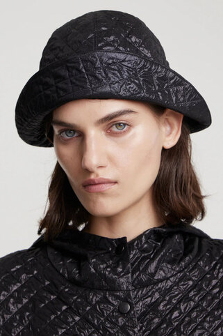 Модель родом из ревущих 1920-х, шляпа клош (или, как ее еще тогда называли, «колокольчик»), — главный хит сезона. В начале ХХ века ее носили, опустив почти до самых глаз, так что перед собеседниками, которых девушка хотела одарить взглядом, приходилось запрокидывать голову. Либо же — судим по старым фотографиям — загибать поля шляпы. Именно такие, подвернутые клош предложил носить в 2025 году главный бренд-трендсеттер Miu Miu. Правда, своему аксессуару Миучча Прада добавила еще небольшой козырек: он деликатно выглядывает из-под мягких изогнутых полей.