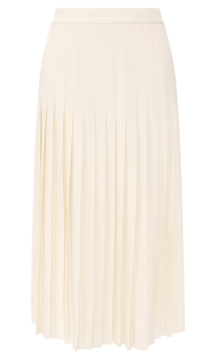 Белая футболка, свитер и плиссированная юбка — мы можем называть это сочетание «базой Миуччи», потому что она вновь и вновь продолжает к нему обращаться, лишь слегка его видоизменяя. Черпайте вдохновение из хорошего вкуса жителей Милана, фильмов Антониони 60-х и школьной формы и попытайтесь создать для себя сочетание, в котором вам всегда будет комфортно.