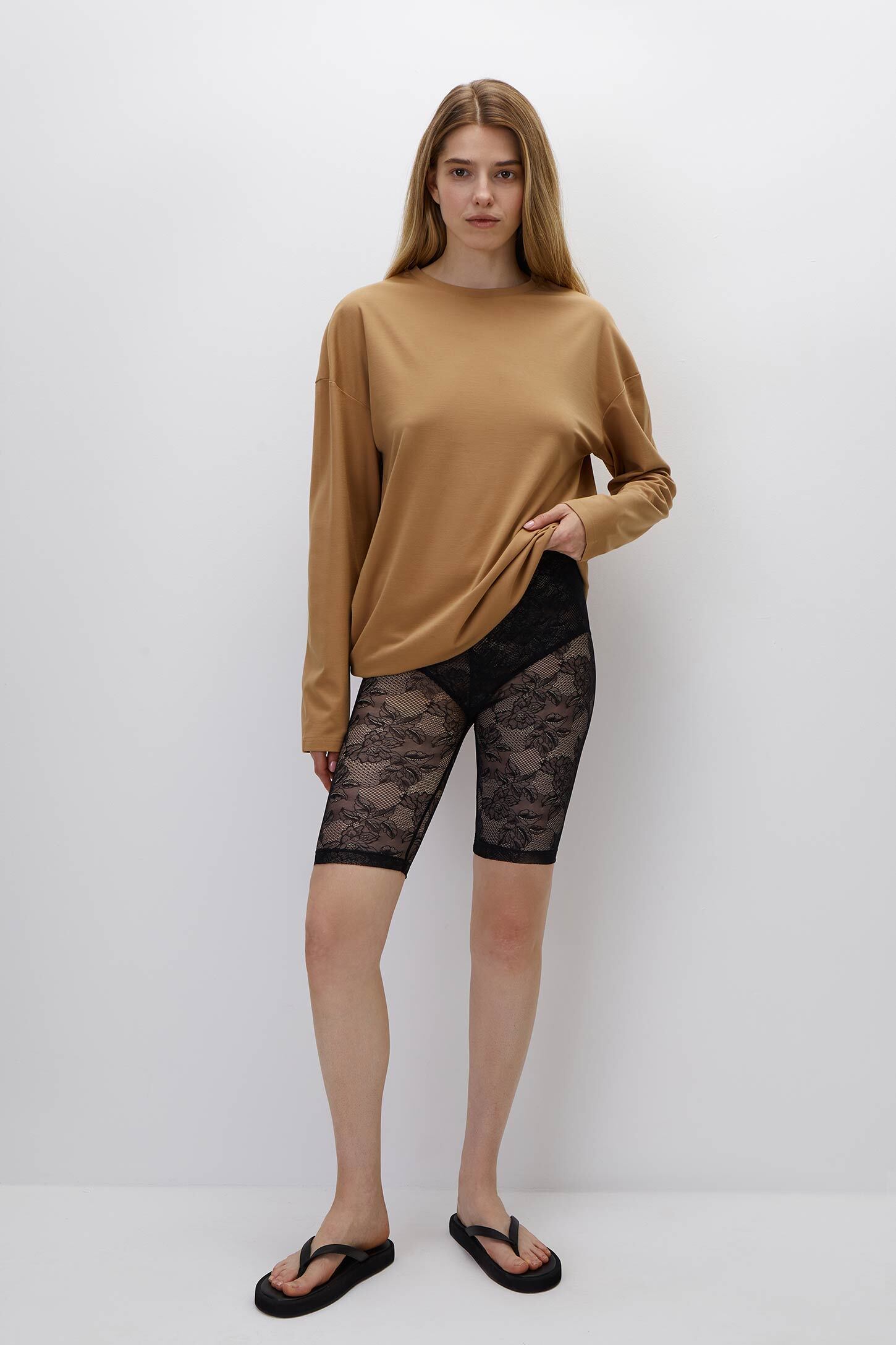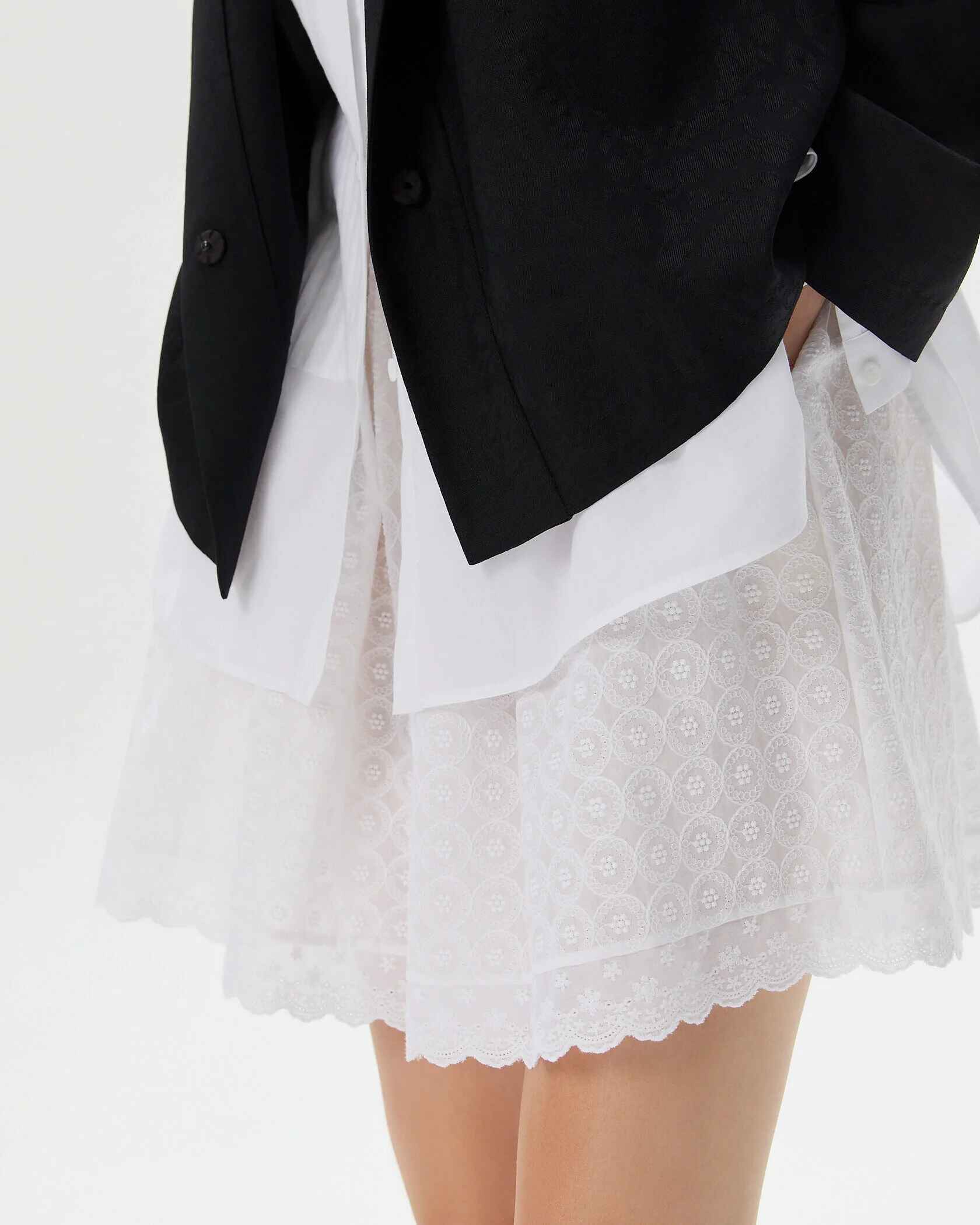 Еще одна it-вещь из гипюра, которая замелькала на модных радарах, — велосипедки. Амстердамский микроблогер Фиа Хамелейнк носит такие с футболкой в винтажном стиле, дополняя массивными ботинками. Похожие велосипедки недавно выпустил российский Belle You, стилисты бренда предлагают сочетать их с оверсайз-футболкой. Объемная футболка — идеальная пара и для кружевной юбки. Так носят все, от инфлюенсера Насти Бурлаки до Софии Коэльо, которая умело миксует романтику и спорт: вместо базовой футболки она предпочитает джерси.