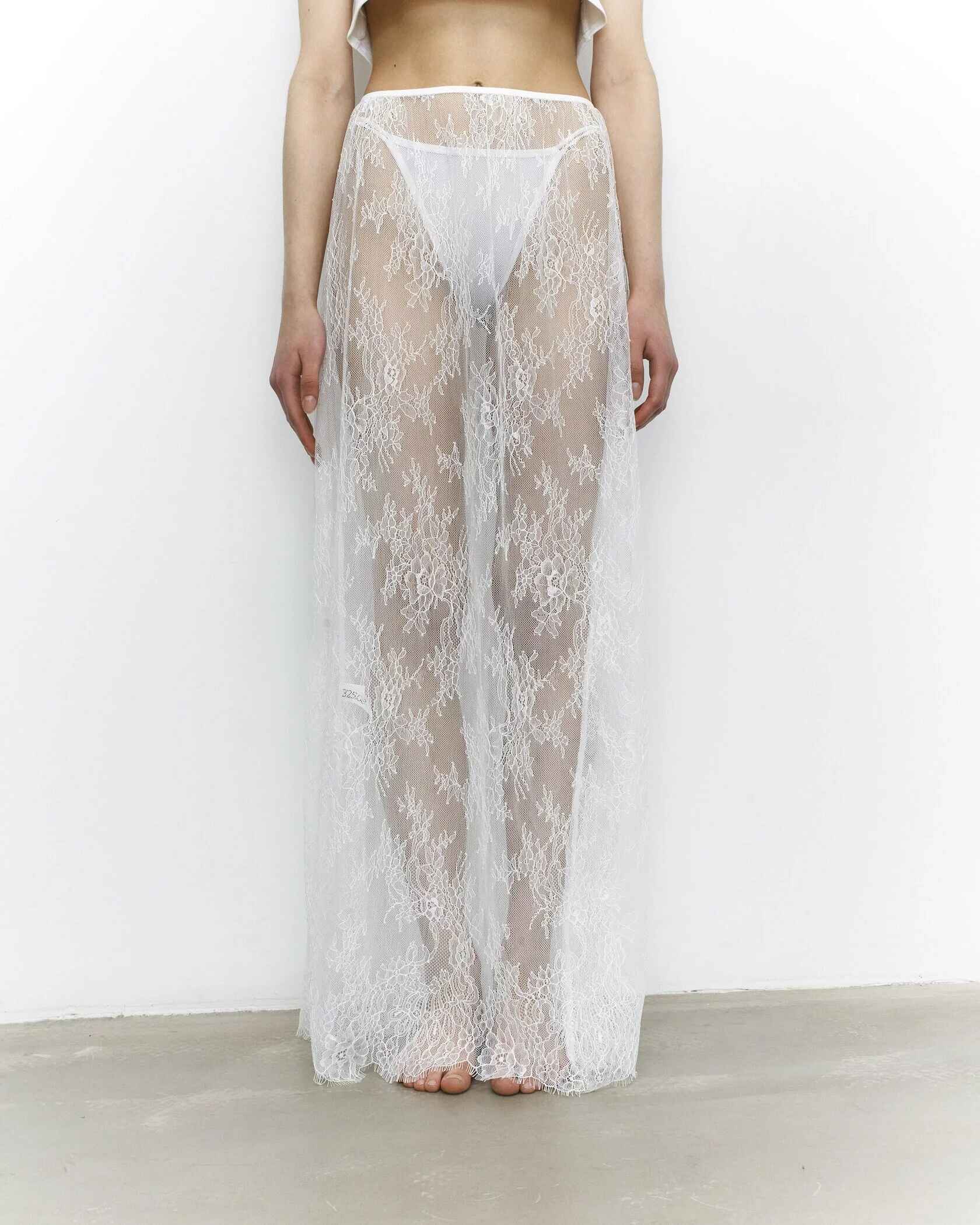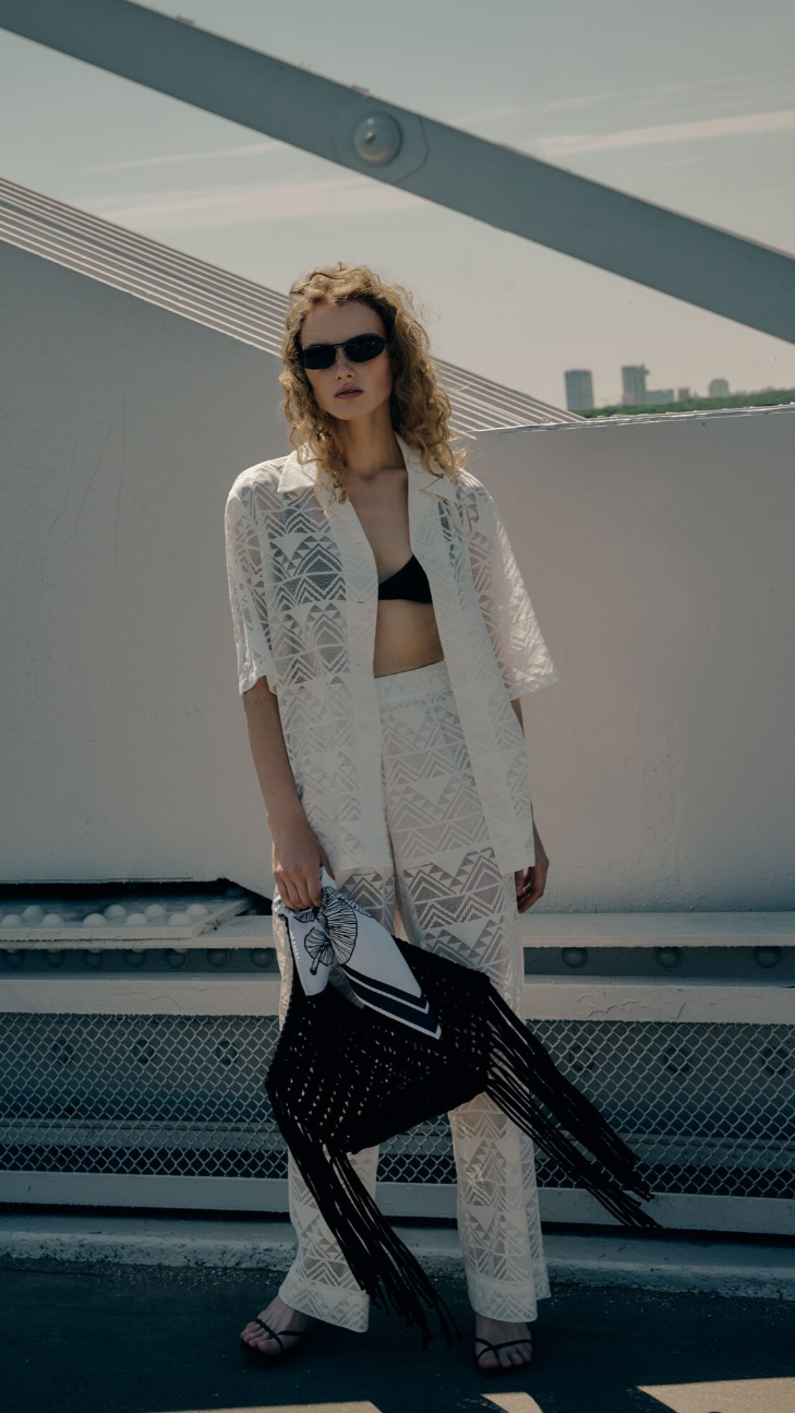 Скандинавские дизайнеры тоже не отстают: бренд Baum und Pferdgarten включил в коллекцию весна—лето 2024 ажурные легинсы. Основатели марки Рикке Баумгартен и Хелле Хестехаве предлагают носить их с костюмными и спортивными шортами. Инфлюенсеры, которые съехались на неделю моды в Копенгаген, активно выгуливают кружевные брюки и юбки, популярные этим летом. Правда, большинство с учетом северных широт стилизует их на осенний манер: с кожаными куртками и тренчами. Так, модный блогер Алиса Фетисова выбрала ажурные брюки бренда Katimo и разбавила романтичное настроение объемным жакетом будто с плеча своего парня.