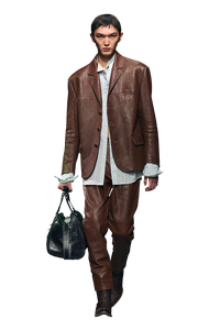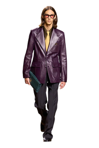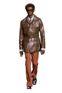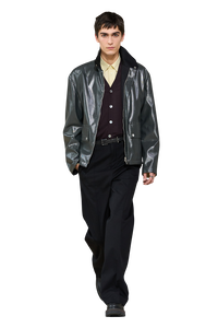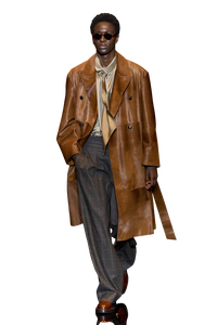 Кроме курток в ходу кожаные пиджаки (как у Prada, которые предложили сочетание с кожаными узкими брюками) и тренчи. Такие, например, показали Amiri и Saint Laurent, они же рекомендуют накидывать брутальные плащи поверх классических костюмов.