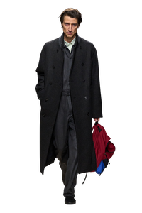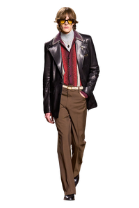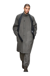 Длинные и укороченные, «коконы» и прямого кроя, двубортные и на запах — доминирующего вида мужского пальто в этом сезоне не обнаружено, так что обращаем внимание на актуальные способы стилизации. Бренд Auralee предложил накидывать пальто поверх косухи (подойдут любые другие куртки), а Prada настаивают на меховых аксессуарах. Например, можно добавить к пальто съемный меховой воротник или меховую же манишку.