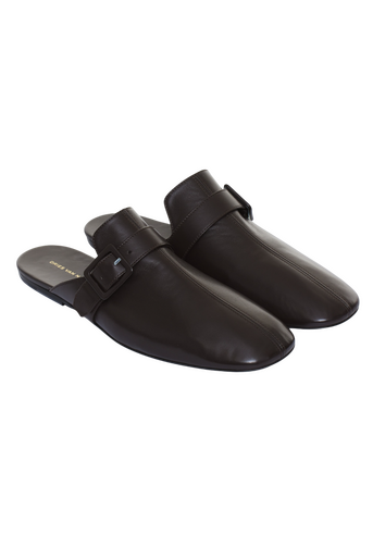 На смену биркенштокам пришли другие модные «домашние» тапки — кожаные мюли. Модные парни носили их еще в прошлом весенне-летнем сезоне, а в этом ставку на них сделал Джонатан Андерсон в Dior. На подиуме пары из гладкой кожи и замши носили с многоярусными шортами карго и вполне себе классическими шерстяными брюками. У бренда Officine Générale похожие сочетались с легкими хлопковыми костюмами.