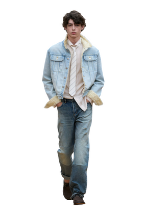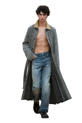 Если раньше «винтажными» величали джинсы с явными пятнами и дырками, то теперь для престижного статуса им достаточно едва заметных изъянов. Так, на джинсах Auralee из коллекции весна-лето 2026 была всего одна небольшая дырка чуть выше колена, а на джинсах Dior — лишь намек на нее. На джинсах Versace потертости удалось разглядеть только в каталоге — низ некоторых брюк был стерт будто в результате длительного романа с асфальтом. Джинсы с похожим эффектом носит и стилист Александр Рогов, и модный блогер Алексей Гребенщиков — винтажности им придает стертый подшивочный шов.