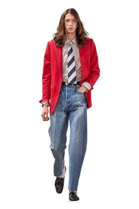 Тренд на мешковатые джинсы, который держался в топе много лет подряд, сдает позиции вместе с общей модой на оверсайз. Чтобы не возвращаться к скинни, модные парни вроде Евгения Тихоновича и Алексея Гребенщикова выбирают «золотую середину» — прямые (и, пожалуй, самые универсальные) джинсы. «Они, безусловно, немного уменьшились в размерах, но по-прежнему остаются свободными», — прокомментировал тенденцию изданию GQ модный инфлюенсер Дрю Джойнер, за стилем которого следит более 260 тысяч подписчиков. На подиуме в сезоне весна-лето 2026 за прямой силуэт одним из первых проголосовал Джонатан Андерсон в своей дебютной мужской коллекции Dior. При этом в некоторых образах штанины были подвернуты только на одной ноге — расслабленность, которую мы можем себе позволить.