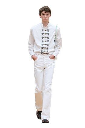 Белые, молочные и жемчужные — джинсы светлых оттенков весной затея рискованная, но Джонатан Андерсон, показавший такие в коллекции Dior в сочетании с парусиновыми кедами или рыбацкими сандалиями, верит в парижский климат и усердие дворников. Варианты верха можно подсмотреть на показе Lemaire, где светлые джинсы сочетались с кожаными куртками и тренчами, и в инстаграм-аккаунте блогера Райана Преведела — он носит их с рубашкой насыщенного синего цвета.