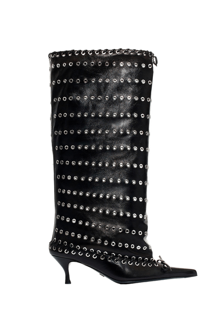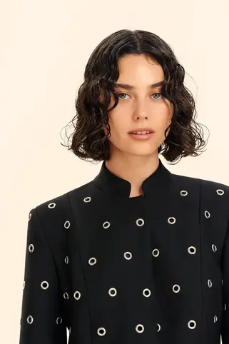 В числе первых металлической швейной фурнитурой «закупился» Питер Мюлье. В прошлом году дизайнер украсил люверсами балетки Alaia — их версия со стразами тогда же попала в список самых желанных вещей платформы Lyst. Вдохновлялся при этом Аззедином Алайей, который в 1980-х проделывал то же самое с кожаными куртками и сатиновыми платьями. За шило, а скорее за лазер взялись и Миучча Прада с Рафом Симонсом — в коллекции Prada весна—лето 2025 на юбках люверсы такого размера, что в них можно просунуть руки (цитируя классика — входят и замечательно выходят). И хотя вряд ли это творение дизайнерского дуэта выйдет за страницы журналов, тренд на люверсы оно мощно поддерживает.