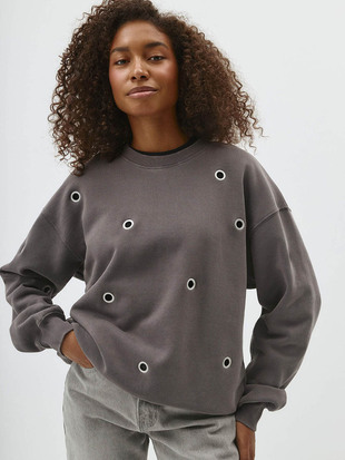 В коллекциях весна-лето 2025 заклепок стало заметно больше — сумки и обувь с ними показали и Isabel Marant, и Dries Van Noten, и Jil Sander. Да и Алессандро Микеле, относительно недавно присоединившийся к Valentino, переосмыслил фирменные для бренда заклепки Rockstud — теперь они напоминают не шипы, а шары. Новую украшенную ими сумку Nellcote уже выгуливают Белла Хадид и Алекса Чанг. Вместе с ними возвращение заклепок одобрила и «икона тихой роскоши» София Риччи — она сочетает «заклепанную» сумку Khaite с классической футболкой и оверсайз-брюками. Инфлюенсер Лена Лерой тоже разбавляет базовый образ из кремовых джинсов и черного пальто подобной сумкой, купленной на Бали («продается почти в любом магазине»). Но можно быть смелее — совершить налет на швейный магазин, захватив и заклепки, и люверсы, дабы носить их все вместе, как модный инфлюенсер Елизавета Гритченко, которая надела со спортивными брюками балетки с люверсами, завершив образ сумкой с заклепками. Не знаем, звенит ли она при входе в «Цветной», но внимание лишним никогда не бывает.