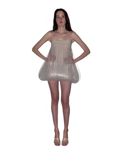 Мне захотелось представить, каким будет 2025-й, и в этой фантазии нащупать образ. Получился наряд, балансирующий между техногенностью и человечностью, — и тут «суперпозиция». В форме платья Jackson de Ville я вижу элементы промышленного дизайна — из этой закругленной трапеции легко дорисовать какую-то вазу или торшер. При этом оно максимально открывает женское тело, только подчеркивая его чувственность. Балетки Grounds вторят задумке — с одной стороны, это вполне себе традиционный элемент вечернего лука (мы еще не до конца отпустили балеткор), с другой — они выглядят дико футуристично. А еще удобные — надеюсь, мы входим в эру, когда девушки выбирают комфортную обувь для важных мероприятий, а мужчины, напротив, готовы отойти от функциональности в сторону эксперимента. Про браслет Outlaw можно было бы сказать, что это вишенка на торте, но раз у нас