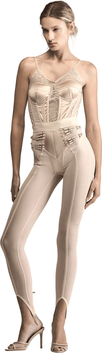 Корсеты и бра, комбинации и кружевные шорты в праздничных коллекциях тоже в ходу, что неудивительно: на подиуме осень—зима 2025/2026 будуарный стиль правил бал — чего только стоят прозрачные кружевные платья Saint Laurent, атласные комбинации Аlberta Ferretti (которые шли в тандеме с мюлями-тапочками) или бра-пули Miu Miu. Героини The Blueprint вовсю взяли тренд в оборот и доказывают, что на декабрьских вечеринках ему вполне есть место: например, стилистка Вита Клац носит светлое шелковое белье под прозрачными кружевными топами и юбками, а Диана Коркунова выгуливает кружевное боди с классическими брюками и горжетками. Для тех, кто избегает предновогодних пробок и не пользуется такси, стилизацию подсказывает команда Gucci: яркие колготки и шуба — ваше все.