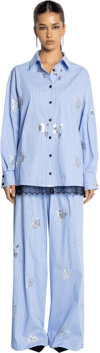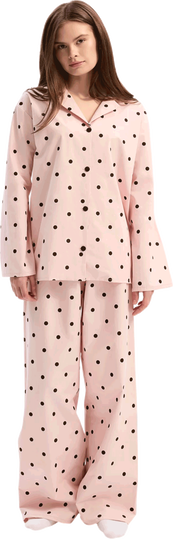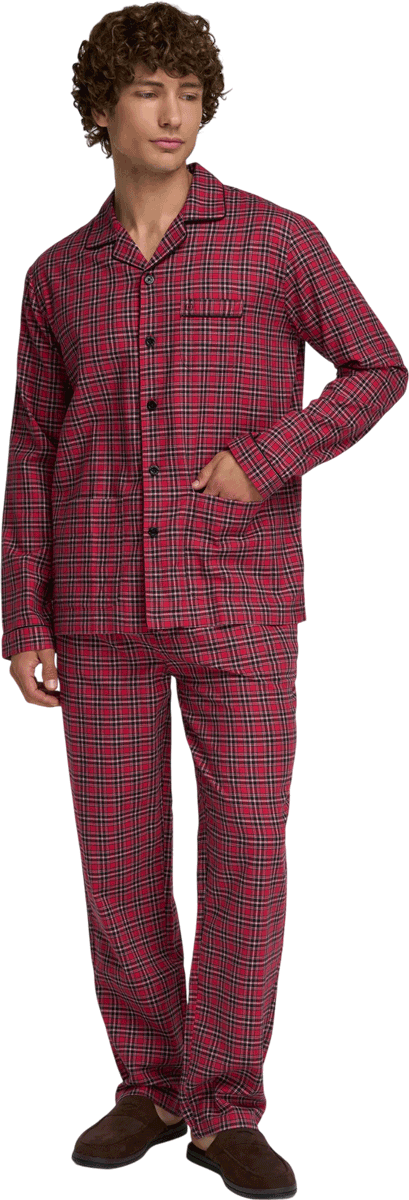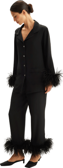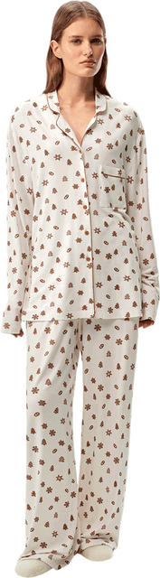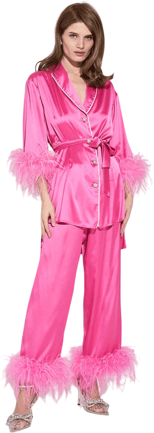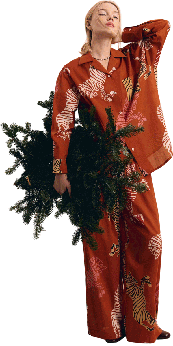 Пижамы превратились в наряды на Новый год еще в ковидные времена и с тех пор остаются одним из самых верных вариантов, даже если праздник вы встречаете не дома. Подтверждает шоу Schiaparelli осень—зима 2025/2026: сверкающая, цвета бронзы, пижама в тандеме с крупными украшениями и деловыми туфлями в мужском вкусе. Собственно, готовый рецепт, как адаптировать домашнюю одежду к светскому выходу. С изначально нарядной (вроде жаккардовой Mango, бархатной Eclata или в пайетках Closer Moscow) трюк провернуть легче всего, но и с более бытовыми (например, из фланели в клетку и с перьевыми манжетами Primrose) он точно сработает.