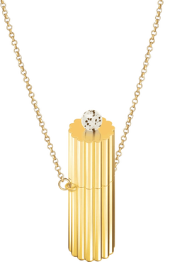С далмантиновой яшмой и «секретом» — полую подвеску, кажется, можно использовать в качестве красивой таблетницы. Ну или спрятать в нее любимый мем — правда, его придется напечатать.