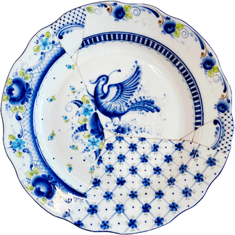 У моей мамы в свое время собралась целая коллекция гжели, поэтому она у меня прочно ассоциируется с домашним уютом и теплом. Так что мое сердце дрогнуло, когда я увидела этот «русский ответ Seletti».