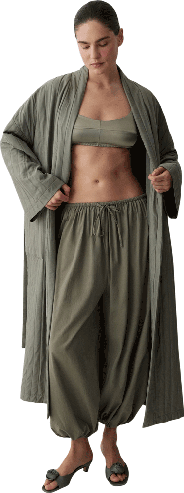 Мои друзья давно знают, что я большой любитель домашних костюмов. К 30 годам наконец-то поняла, что дома нужно выглядеть прилично, и выбросила все растянутые треники и футболки (ладно, вру, оставила на черный день парочку). Не смогла пройти мимо новогодней коллекции в Belle You и пижамы невероятного оливкового оттенка. Нужен полный комплект и срочно!