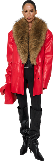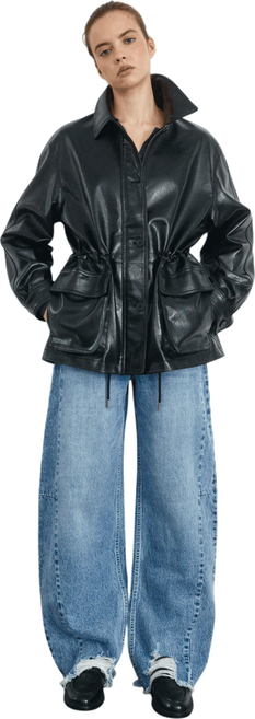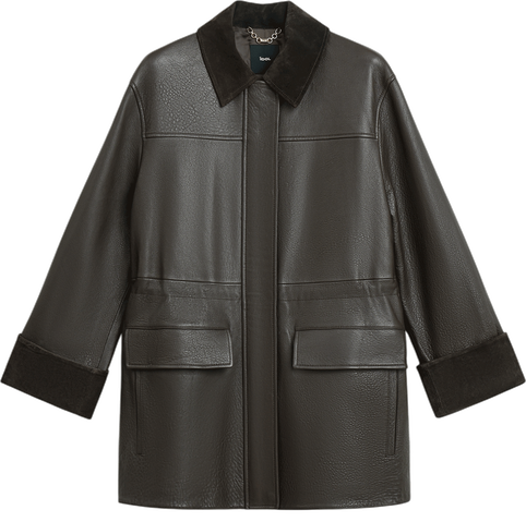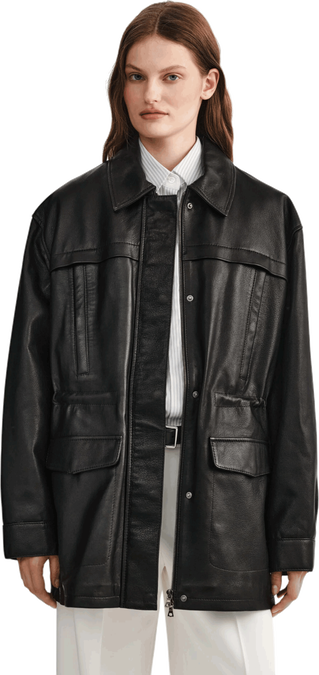 А вот самой модной женской курткой этой осени можно смело назвать кожаную парку на кулиске. По сути — некая вариация «куртки рабочего», которая была популярна на протяжении нескольких прошлых сезонов. Самый универсальный вариант — носить подобную с прямыми, например костюмными, брюками. Но можно придумать и более нарядный вариант на вечер: нужны лишь куртка подлиннее, ультракороткие шорты и черные колготки.