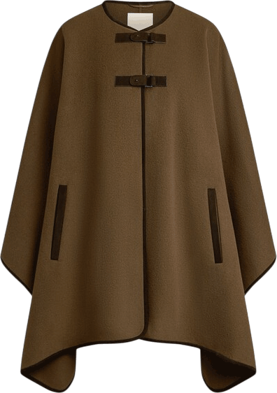 Всевозможные накидки (от тех, что прикрывают лишь плечи, до тех, что по колено) — переходящий тренд прошлой осени. Кейпы, пончо и верхняя одежда с пелериной — надевайте и представляйте, что прогуливаетесь вокруг сельского домика, обшитого досками, где-то в Северной Америке XVIII века. Такие жилища как раз назывались кейп-кодами.