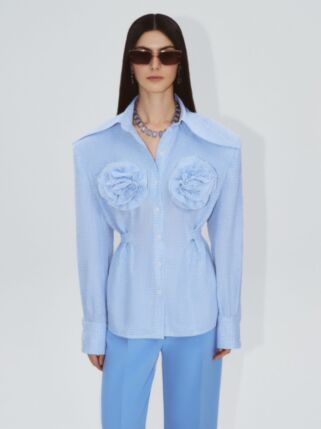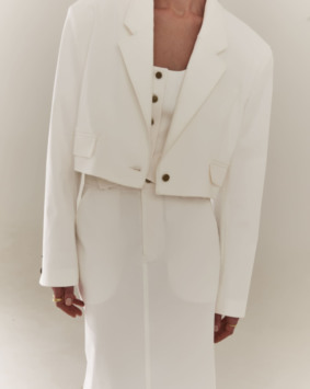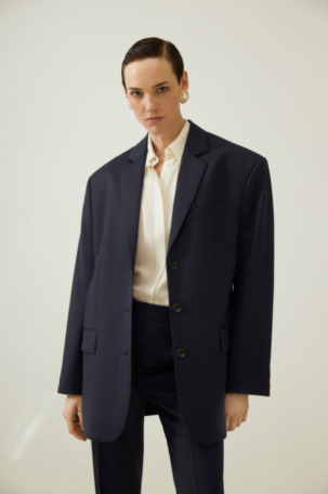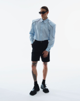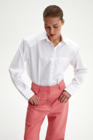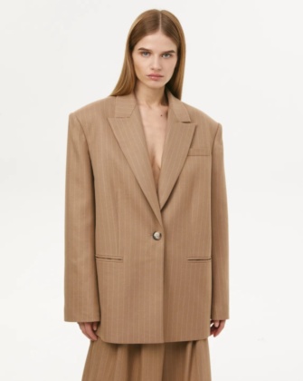 Не дождавшись осени и выхода коллекции Saint Laurent, расправил пошире плечи бренд The Frankie Shop. Если увидите в соцсетях модного блогера в жакете или рубашке с огромными накладными плечами, можете называть бренд не задумываясь. Адепт минимализма Ханна Уайтинг носит такие жакеты с боксерами, легинсами и джинсовыми мини-юбками. А Эльза Хоск предлагает комбинировать жакет с ультракороткими шортами.