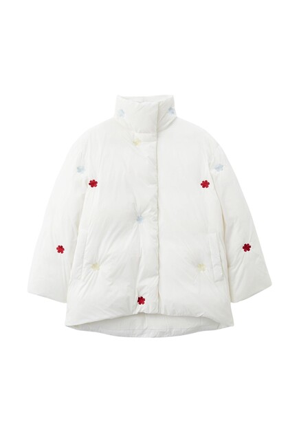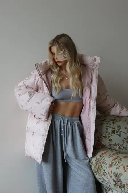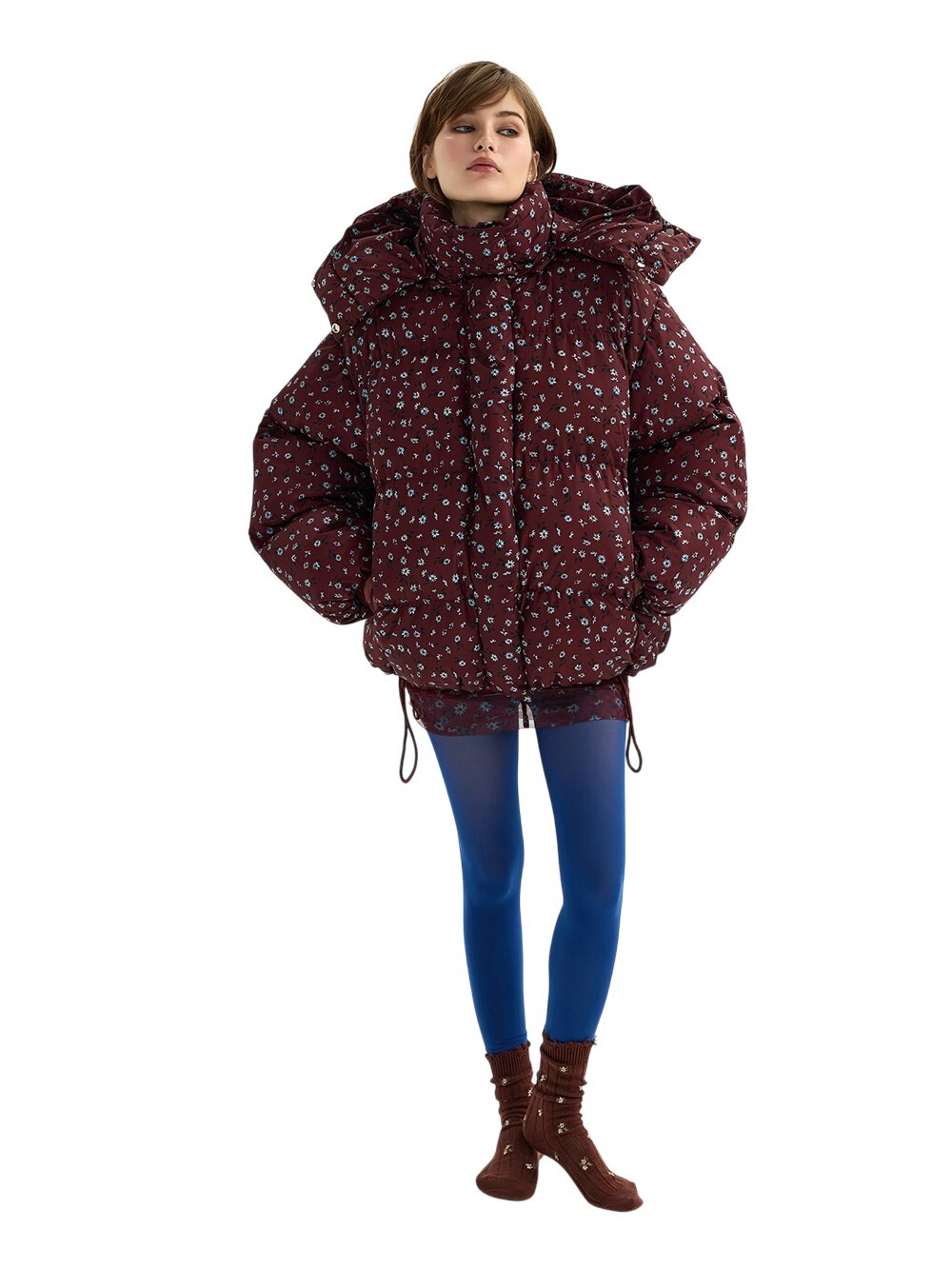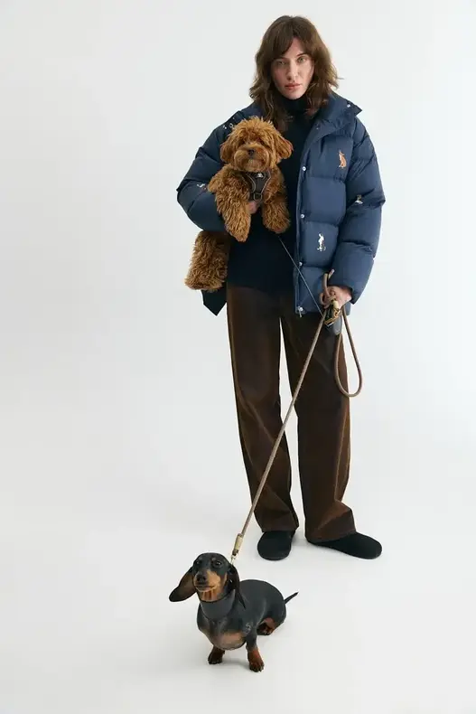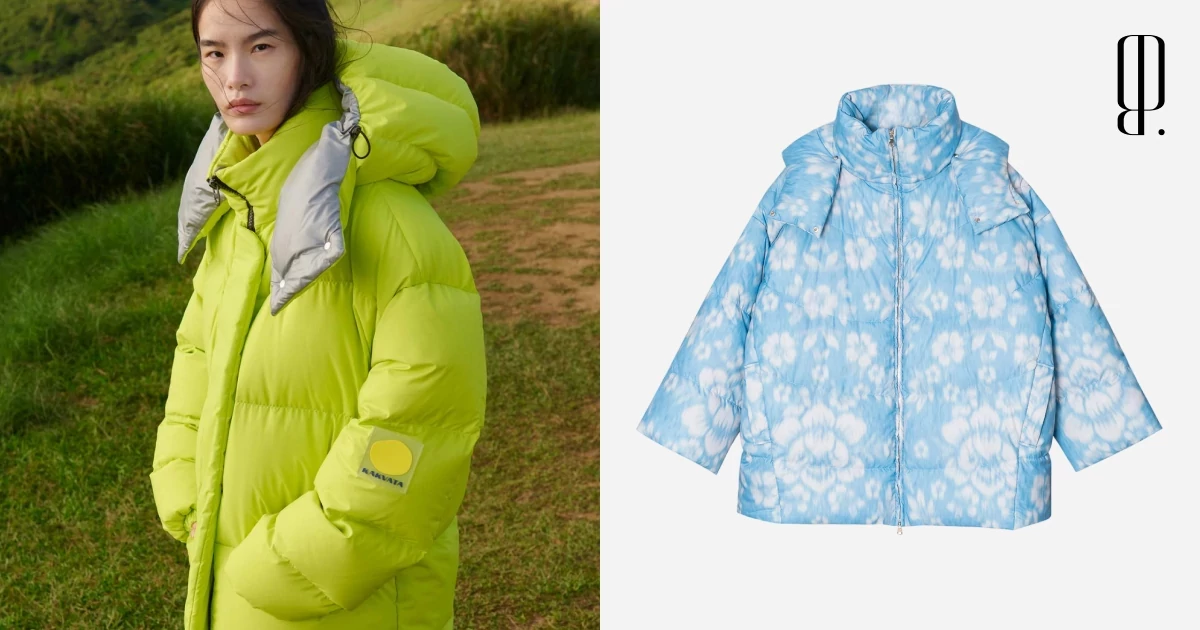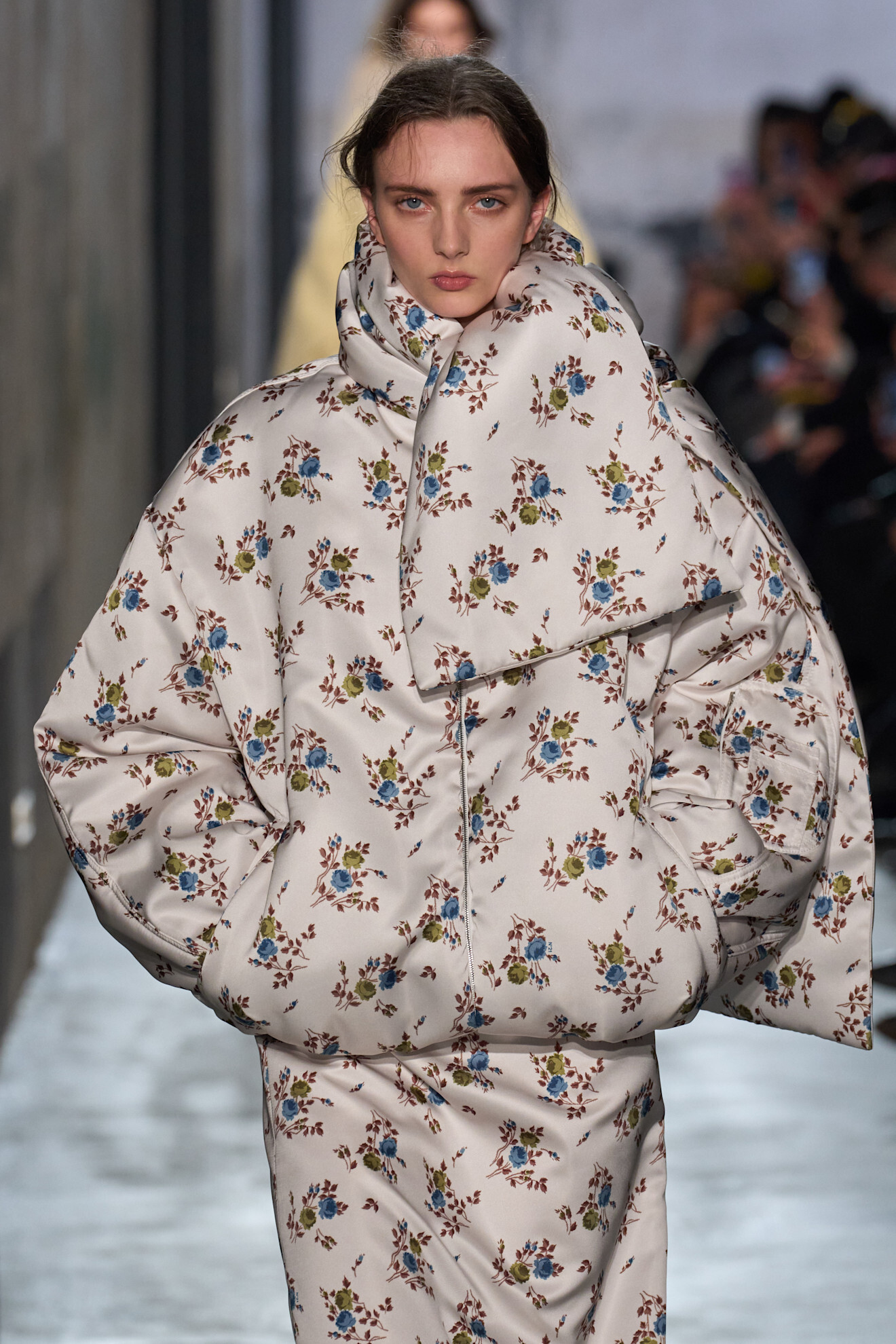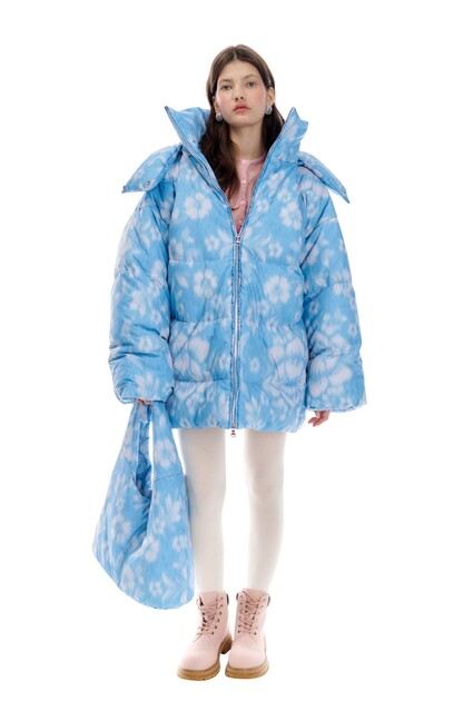 Думать зимой о лете — стандартная практика, оттого так популярен на рейлах с пуховиками цветочный принт. Однако в этом сезоне бренды не ограничились флорой. Российский бренд Cantik, например, изобразил на зимних куртках балерин, Daisyknit вышил на них болонок и корги, а 2mood добавили на свои пуховики лоскуты рубашечной ткани в клетку.