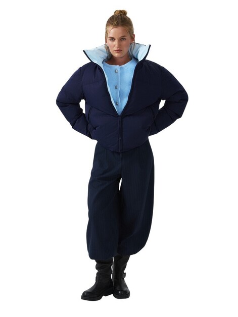 Раньше про пуховики до талии можно было бы сказать «только для европейской зимы» или «для тех, кто передвигается исключительно на машине», но теперь, учитывая глобальное потепление, этот тренд могут опробовать все. В новых коллекциях брендов укороченные пуховики часто можно встретить с модным нынче высоким воротником — например, как у курток Lusio или российского бренда Suborbia.