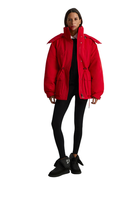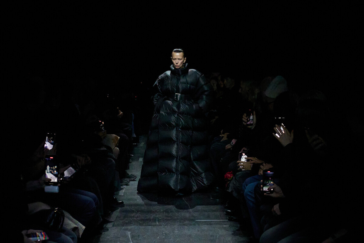 Тренд на приталенный силуэт, который чуть раньше коснулся жакетов, дошел и до пуховиков. В основном подчеркивать талию дизайнеры предлагают с помощью кулиски, но и ремни тоже встречаются — например, широкие кожаные, как на показе Balenciaga.