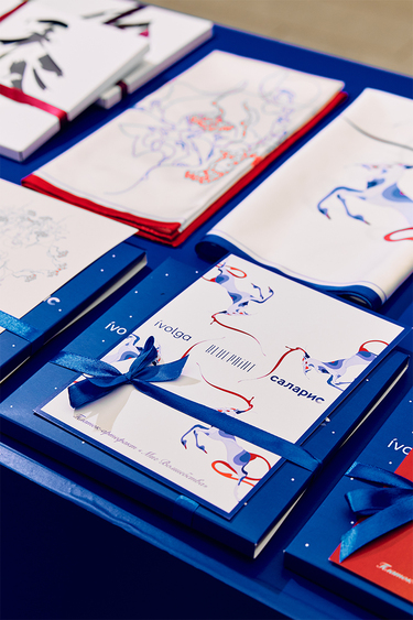 Остальные участники поп-апа тоже работают со сказочными мотивами и персонажами. Например, бренд 1811 Eighteen One One, посвящающий коллекции то Царевне Лебеди, то Щелкунчику, то Хозяйке Медной горы; в пространстве The Blueprint x «Саларис» марка оставила фактурные джемперы, невесомые комбинации и нарядные жакеты из новой коллекции. Бренд одежды и аксессуаров Ívolga, чья новогодняя капсула коснется уральских сказов, приготовил для пространства платки со сказочными принтами. Eulalique, у которого можно найти невесомые вещи из органзы (создает на теле эффект волшебной пыльцы — проверено), придумал для нас шелковый шарф с танцующей синей бахромой: его можно повязать на голову, запястье или ручку сумки.