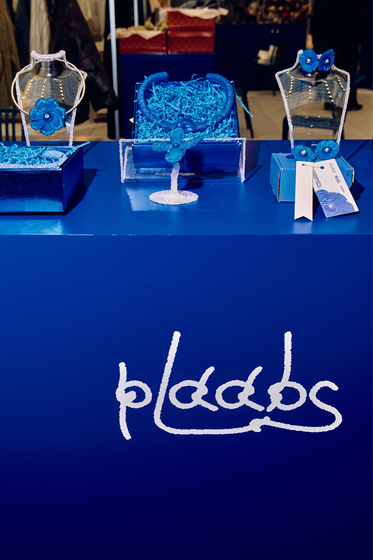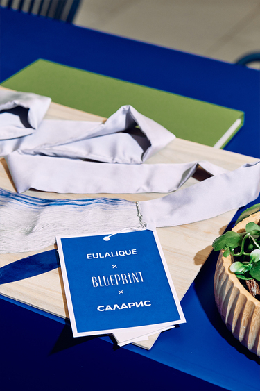 Помимо одежды, аксессуаров и косметики в поп-апе цвета Blueprint Blue можно купить тиражное искусство. Соответствующий островок мы установили вместе с багетной мастерской и студией печати Room 34: на ней собраны сказочные принты — от пейзажей с одуванчиками до леденцов-петушков и котиков в шляпах — авторства современных художников. Среди них, разумеется, есть участники списка The Blueprint 100 — Лена Марру, Василий Кононов-Гредин и Мария Алигожина, чьи работы вы могли видеть на ярмарке blazar в этом и прошлом году в нашей секции. Завернуть с собой принты и все на свете можно тут же, на прилавке The Blueprint x Bummagiya, вместе которой мы выпустили новогоднюю бумагу с минималистичным синими елками, игрушками и лошадками.