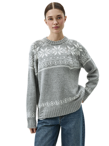 «В 2024-м праздничные свитеры — это больше, чем просто шутка». Под таким заголовком GQ выпустили подборку рождественских свитеров. Да, речь идет о том самом жанре машинной вязки, в котором сомнительный дизайн и плохое качество материалов десятилетиями шли рука об руку. Но, кажется, в этом году стремные свитеры сделали большой шаг навстречу хоть каким-то вменяемым стандартам красоты. Теперь на груди у собеседника мы можем любоваться не только неказистыми оленями, скучными снежинками и глупыми шутками (хотя куда без них) — но и довольно искусными узорами fair Isle, как из ретрокаталогов по вязанию.