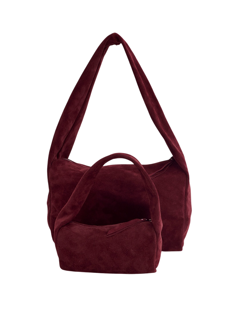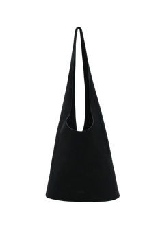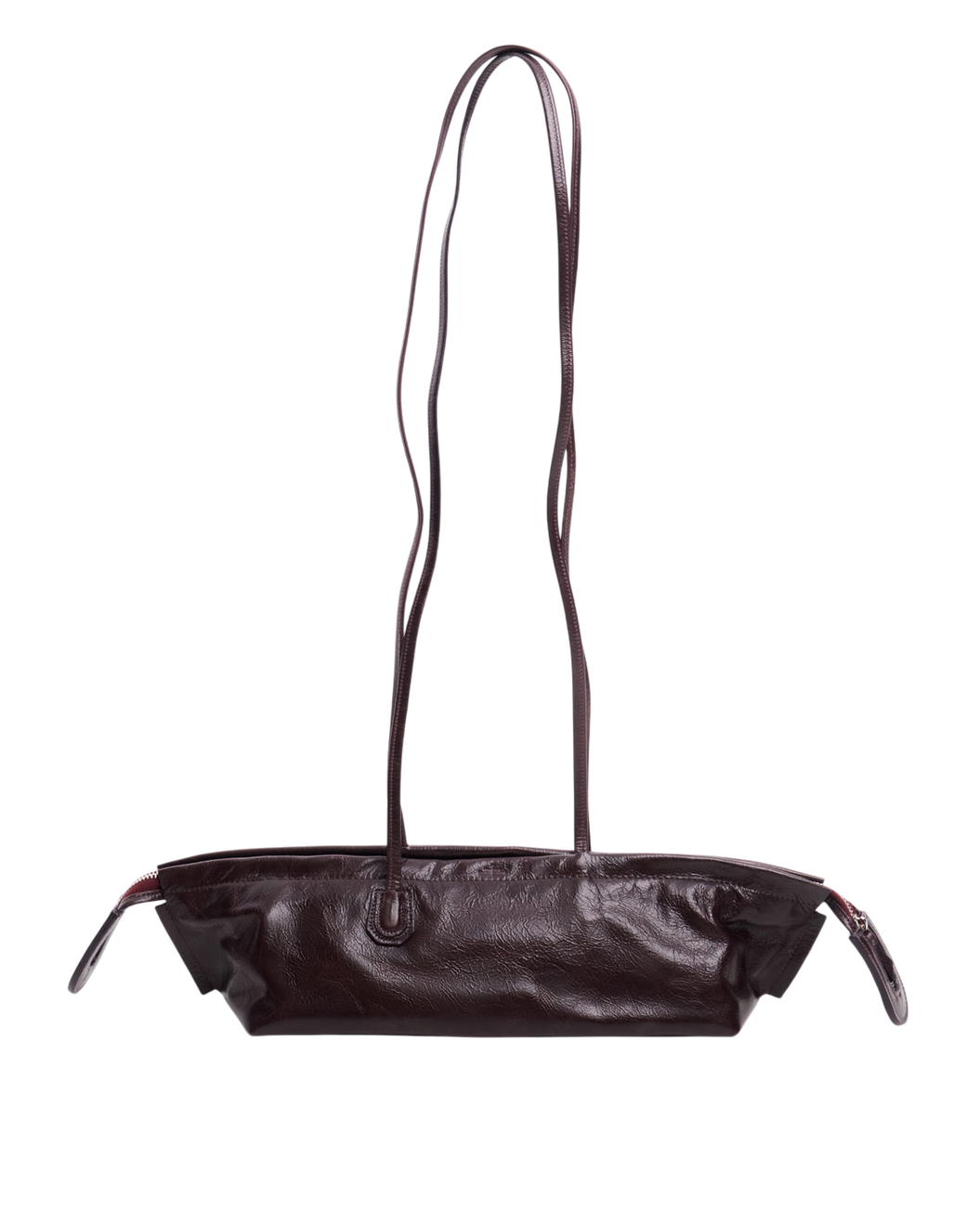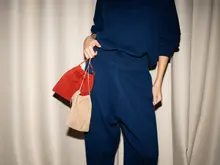 Напоминающие кисеты мешочки из шелка и не только воскресли с подачи Miu Miu — Лотта Волкова стилизовала их как обвесы к сумкам. Впрочем, примечательны они и как самостоятельные игроки: в коллекциях 2025-го подобные сумки замечены и у Gucci, и у Saint Laurent, и у By Malene Birger. Скандинавский дизайнер Мален Биргер предложила носить мешочек не просто в руке, а на талии или через плечо — как котомку.