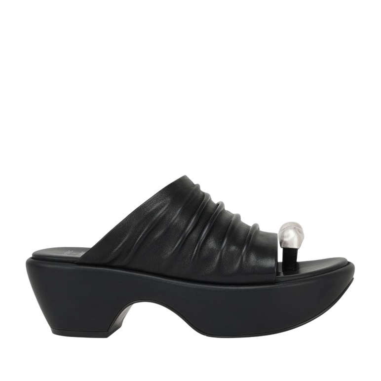 И этим все сказано. Лаконичные черные босоножки, в которых летом разве что за грибами не пойдешь. Впрочем, если выбрать невысокий каблук и потуже затянуть кожаные ремешки, им и эта задачка не страшна.