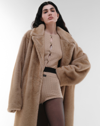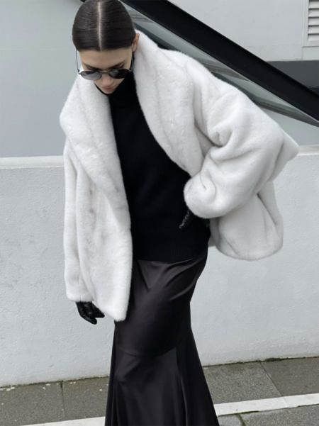 Фейковый мех неплохо освоили и российские бренды: найти хорошую имитацию ламы, рыси и песца — не проблема. Osome2some даже сымитировали мех горного козла — и сшили из него полушубок. Кстати, именно укороченную шубу можно назвать второй по популярности моделью после объемных винтажных моделей. Такие модницы носят запросто — например, с джинсами. Стилист Ирма Оганова добавляет к такому дуэту угги и вязаную повязку на голову, а инфлюенсер Ольга Масельскене — бейсболку или трикотажный чепчик. В общем, вам есть с кого брать пример.