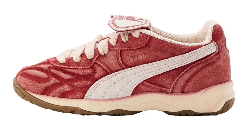 Если вы не готовы носить бутсы в городе, как самые радикальные последователи футбольного тренда, то у нас есть отличная повседневная альтернатива. «Комнатная» версия бутсов Puma King, созданная для игры на паркете, обладает главным функциональным маркером этого жанра — съемным язычком. По всему верху модели идет декоративная строчка, а замша словно выцвела за долгие годы, проведенные в коробке без дела. Модель относится к числу искусственно состаренных из линии NeverWorn, где другие пары — будто пожелтевшие от времени и измазанные клеем.