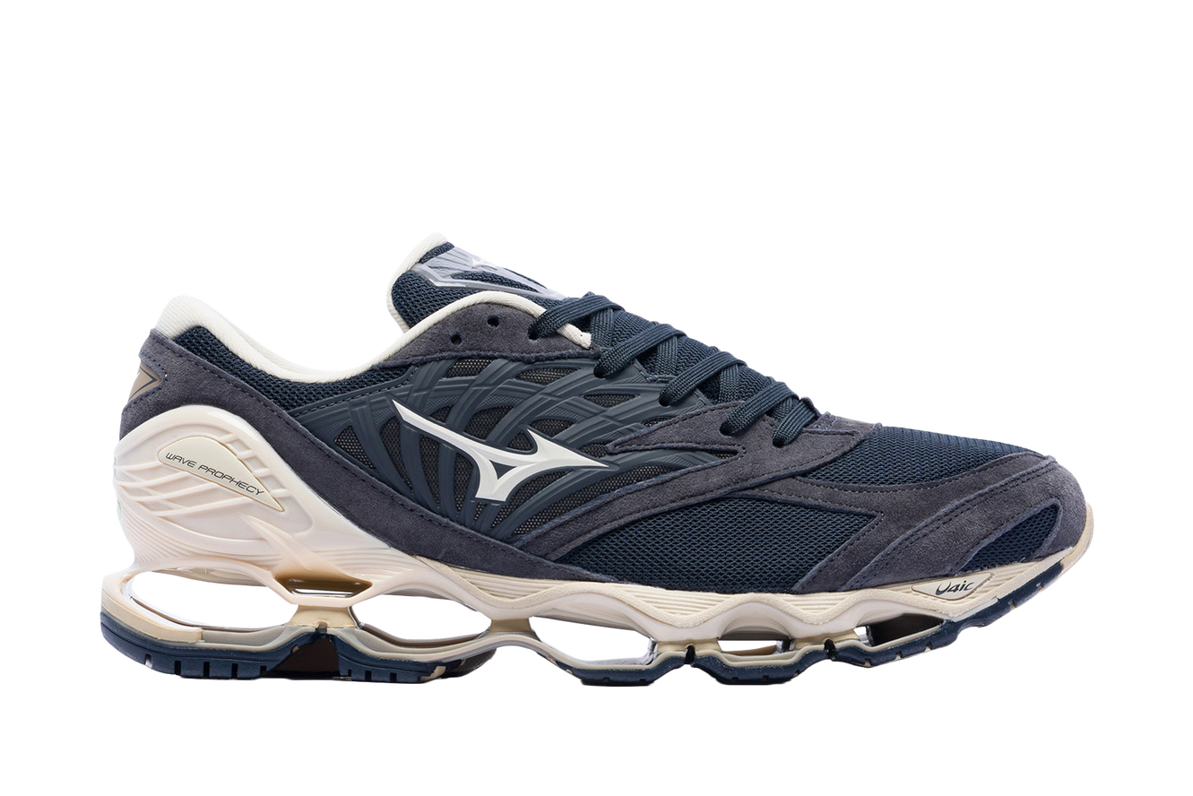 Один из способов облегчить жизнь (а летом, конечно, хочется скинуть с себя массивную обувь) — переобуться в дышащую модель Mizuno Wave Prophecy LS, которая из-за перфорированной подошвы напоминает нам дом на сваях. За счет такой подошвы, кстати, и амортизация у кроссовок нетипичная: обеспечивается технологией Infinity Wave — подошва сделана из двух пластин с резиновыми демпферами (механизмами, уменьшающими вибрацию) между ними. И хотя ощущения от носки в начале могут быть слегка непривычными — вы отчетливо чувствуете, как подошва «проседает», — за такой футуристичный внешний вид мы готовы простить паре небольшой период адаптации.