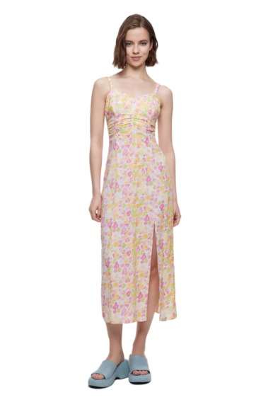 Вроде бы мы давно знаем, как и с чем носить летние платья с цветами. Они самодостаточны, так что остается подобрать любую обувь в зависимости от настроения и планов: допустимы и белые кеды, и туфли на каблуках. Впрочем, инфлюенсеры все чаще носят романтичные платья с босоножками, сандалиями и шлепанцами. Например, Джанет Мэдсен, соосновательница скандинавского бренда ROTATE и по совместительству блогер — сочетает платье в пол с вьетнамками. Еще один вариант стилизации — с туфлями в мужском стиле или лоферами — который сезон подряд нам предлагает основатель Erdem Эрдем Моралиоглу. И не стоит бояться комбинировать платье — с джинсами или брюками, тем более что подталкивают нас к этому многие, в том числе Molly Goddard и The Row. Кстати, платья мы вам уже нашли, вам осталось выбрать любимый прием.