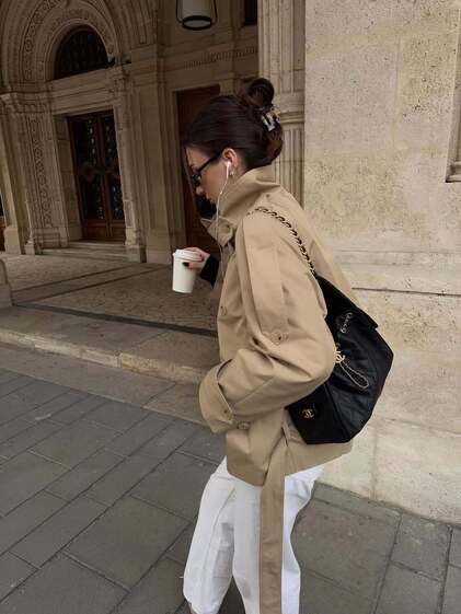 Верхняя одежда с талией в духе 1920-х годов в тренде уже несколько сезонов, и этот весенне-летний — не исключение. Если говорить конкретно о тренчах, то низкой линией отличались экземпляры Altuzarra, Calvin Klein, Attico, Maison Margiela. А самую-самую — даже ниже бедер — сделали Chloé: дизайнер бренда Чемена Камали обозначила ее при помощи резинки. Впрочем, чтобы быть в тренде, покупать новый плащ не обязательно: достаточно повторить стайл-трик с показа Celine, где объемные плащи были подхвачены на бедрах кожаным ремнем. Носите такие с чем душе угодно: модный блогер Лана Лерой, например, выгуливает в тандеме с джинсами и бейсболкой.