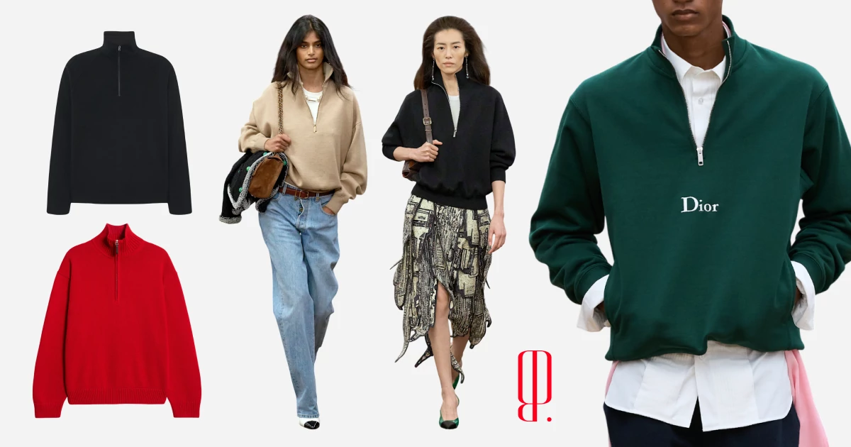 На показах Dior и Chanel, модных блогерах и протестующих тиктокерах: джемпер с молнией до груди — одна из самых модных (и символичных) вещей прямо сейчас. Основательница Telegram-канала «Вишлист» Залина Амирова добавляет, что в нем даже переход из праздничного режима в рабочий может показаться приятным — осталось добавить белую рубашку и джинсы по рецепту Джонатана Андерсона, Матье Блази и не только.