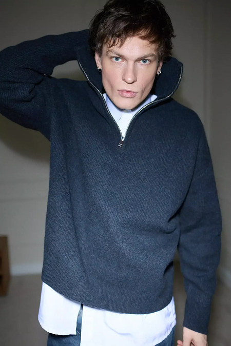 Традиционно джемпер с приставкой quarter-zip в мире моды жаловали не сильно. Еще несколько лет назад редакция GQ назвала его «безрадостной вещью для безрадостной рутины» и «пережитком пандемии». Именно такой носил 80-летний медиамагнат Логан Рой в сериале «Наследники», а в реальной жизни — бывший британский премьер Риши Сунак. Однако теперь за репутацию вещи взялись селебрити, на чей стиль хочется равняться куда больше. Например, летом 2025-го в джемпере с молнией (расстегнутой до обнаженной груди) папарацци застали Брэда Питта. Позже похожий, только из хлопка и с логотипом Dior, выгулял его коллега Джонатан Бейли — на мужском показе весна-лето 2026, дебютном для Джонатана Андерсона. Под толстовкой виднелись голубая рубашка с галстуком, завершали композицию джинсы и лоферы — образ типичного офисного работника, даром что Dior. Сам бренд, точнее, стилисты его онлайн-каталогов, предлагают носить толстовку (кстати, на сайте ее можно найти за какие-то 1650 долларов) поверх белой, навыпуск, рубашки, с классическими брюками и кроссовками — в общем, представить, что в офисе вечная пятница.