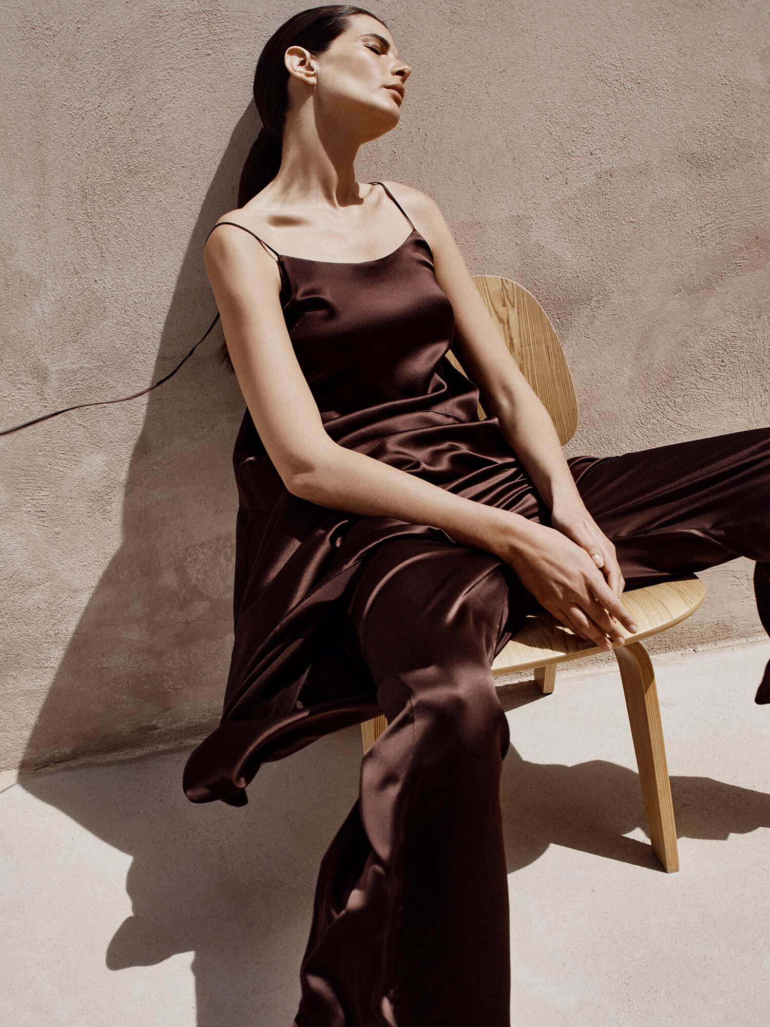 IDOL LAB мы задумывали как пространство для экспериментов — возможность выйти за рамки привычного. Каждая коллекция строится на уникальной концепции — это могут быть капсулы из 100% шёлка или натуральной кожи, особые декоративные техники, сложные фактуры и нестандартные силуэты.