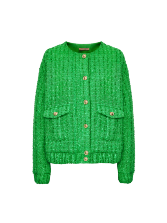 Для вау-эффекта подойдет, например, мини-юбка или широкие брюки из серебристой кожи, а если добавить еще пиджак — получится полный shine bright like a diamond. Короткое платье из твида оттенка фуксии или ярко-зеленый костюм-двойка — чтобы выделиться на танцполе.
