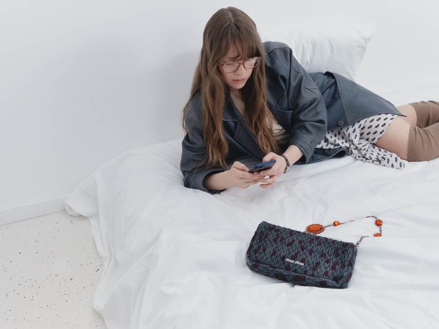 Юлианна Гриб: «Авито стало для меня "вечерней медитацией". Ищу всегда целенаправленно, но алгоритмы приложения уже знают мой вкус и предлагают хорошие варианты, которые меня заинтересовывают. На съемку я надела свои любимые находки — сумку Miu Miu 2000-х и юбку Prada, купленную у знакомой. А в вишлисте — мюли Chanel, плащ Lemaire и, конечно, еще одна юбка Prada — она никогда не бывает лишней»
