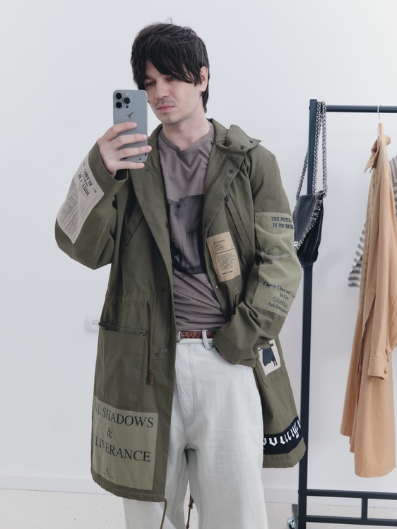 РАМИЛЬ ШАКИРЗЯНОВ: «Я занимаюсь арендой мужских вещей для съемок, поэтому постоянно нахожусь в поиске редких и интересных вещей. Такие предметы с историей и характером чаще всего встречаются именно на ресейле. Однажды увидел парку Raf Simons Poltergeist с бирками. Сначала в шутку скинул товарищу — мол, смотри, что продают. А потом осознал масштаб культовости и купил ее за 400 000 рублей. Притом что ее рыночная цена за ношеную позицию доходит до 12 тысяч долларов. Сейчас она хранится у моего друга Глеба Костина. Еще в коллекции — пальто Dries Van Noten, доставшееся за 5000 рублей: продавец просто написал в объявлении “бельгийский дизайнер”, не указав бренд».