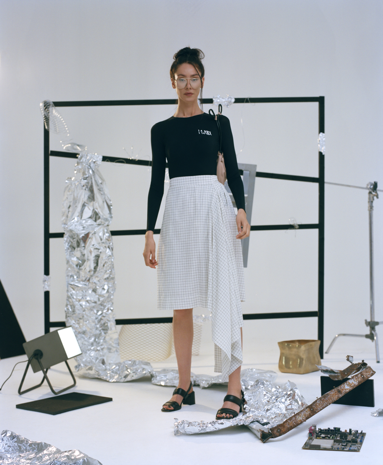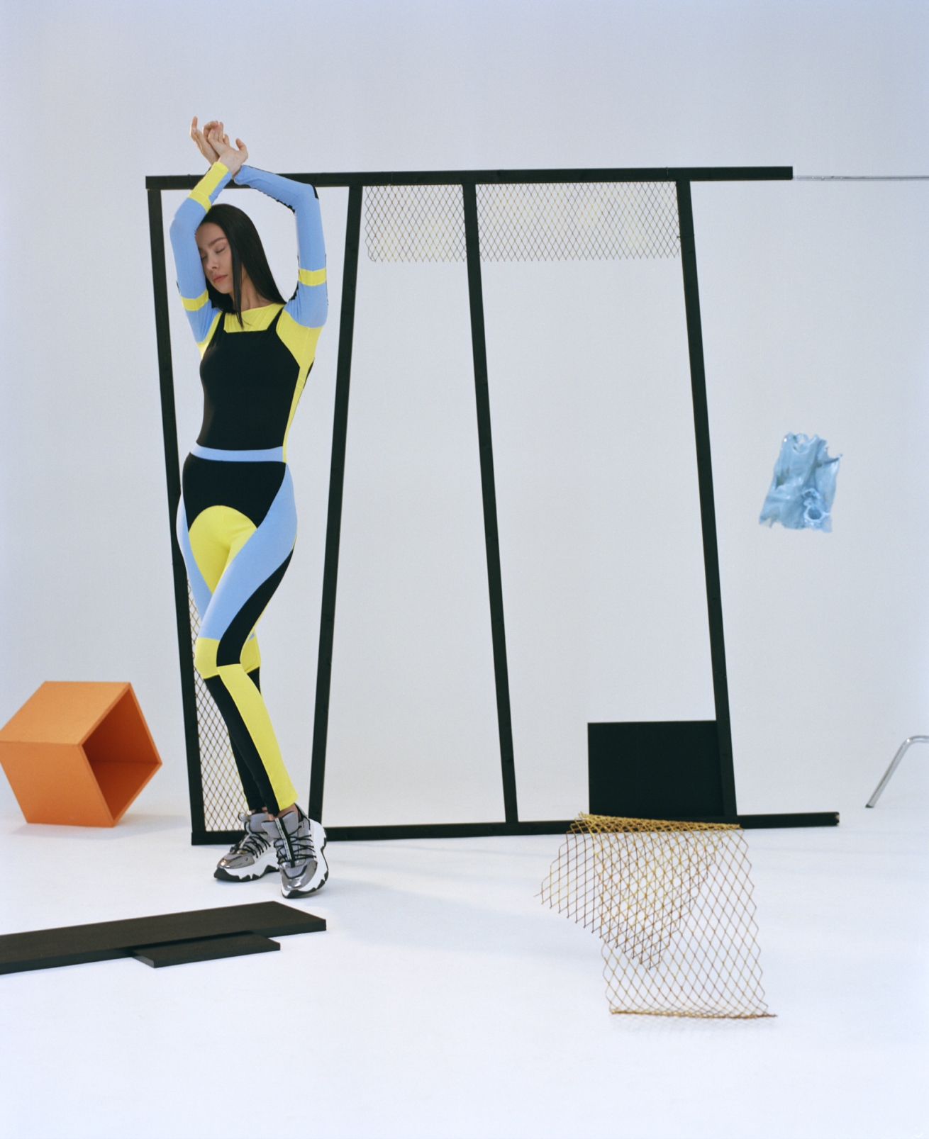 Мне нравится свобода выбора. Я выхожу из дома и еще не знаю, как проведу день. Могу пройтись по набережной с друзьями, которые живут по соседству, или взять велосипед и отправиться на Воробьевы Горы. А могу потренироваться на спортивной площадке в Лужниках или пойти на пробежку. Это особая философия — когда есть только ты, город и тебе не нужны дополнительные условия, чтобы потренироваться. Этот комплект напоминает мне образ героини футуристичного фильма. Кстати, я могла бы пойти в этом образе и на вечеринку — достаточно заменить массивные кроссовки на босоножки и подобрать верхний слой. Спортивная одежда уже давно не табу для заведений, главное — правильный микс стилей в образе.