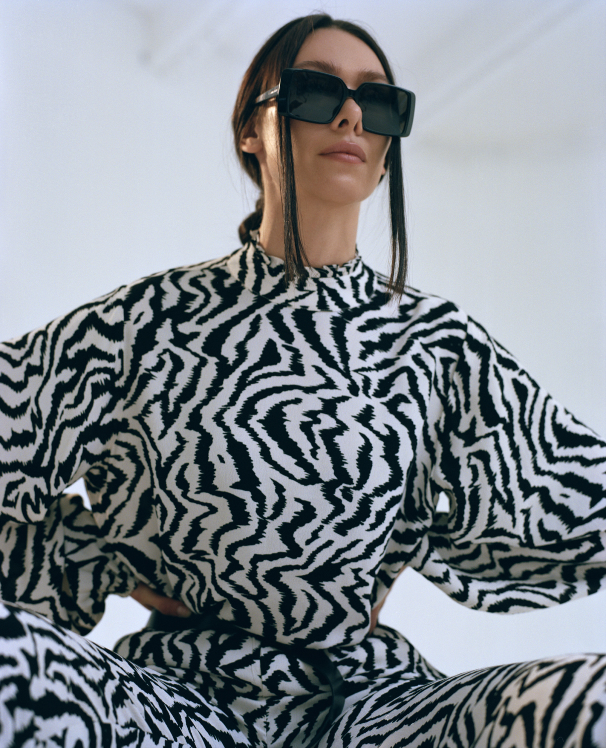 Я верю, что одежда создает эстетику и настроение. В рабочих процессах я максимально сосредоточена, но в то же время мне не хочется нагнетать слишком серьезную протокольную атмосферу. За счет акцентов и расцветки этот образ смотрится чуть более расслабленным и свободным. Мне нравится, как изменился наш мир после пандемии — мы поменяли строгие костюмы на пижамные, лодочки на слиперы, а статусные браслеты на инфантильные ниточки бисера. В это непростое время нам всем захотелось стать чуть проще.