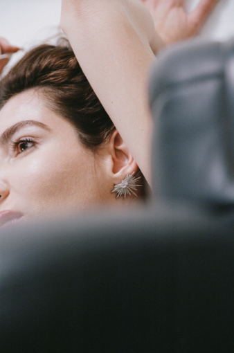 обе серьги на одно ухо.