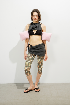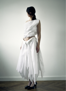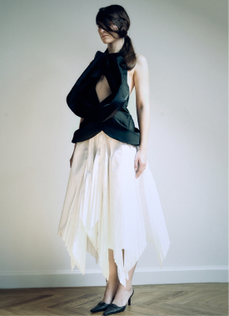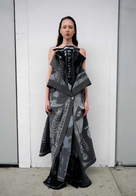 Марина размышляет о ценности как колебании между грандиозностью и ничтожностью через коллекцию, где одежда становится материальной формой этого исследования. Через платье, похожее на связку наличных, Марина показывает, как дофамин покупки затмевает все то, чем одежда является за пределами ценности как ценника.